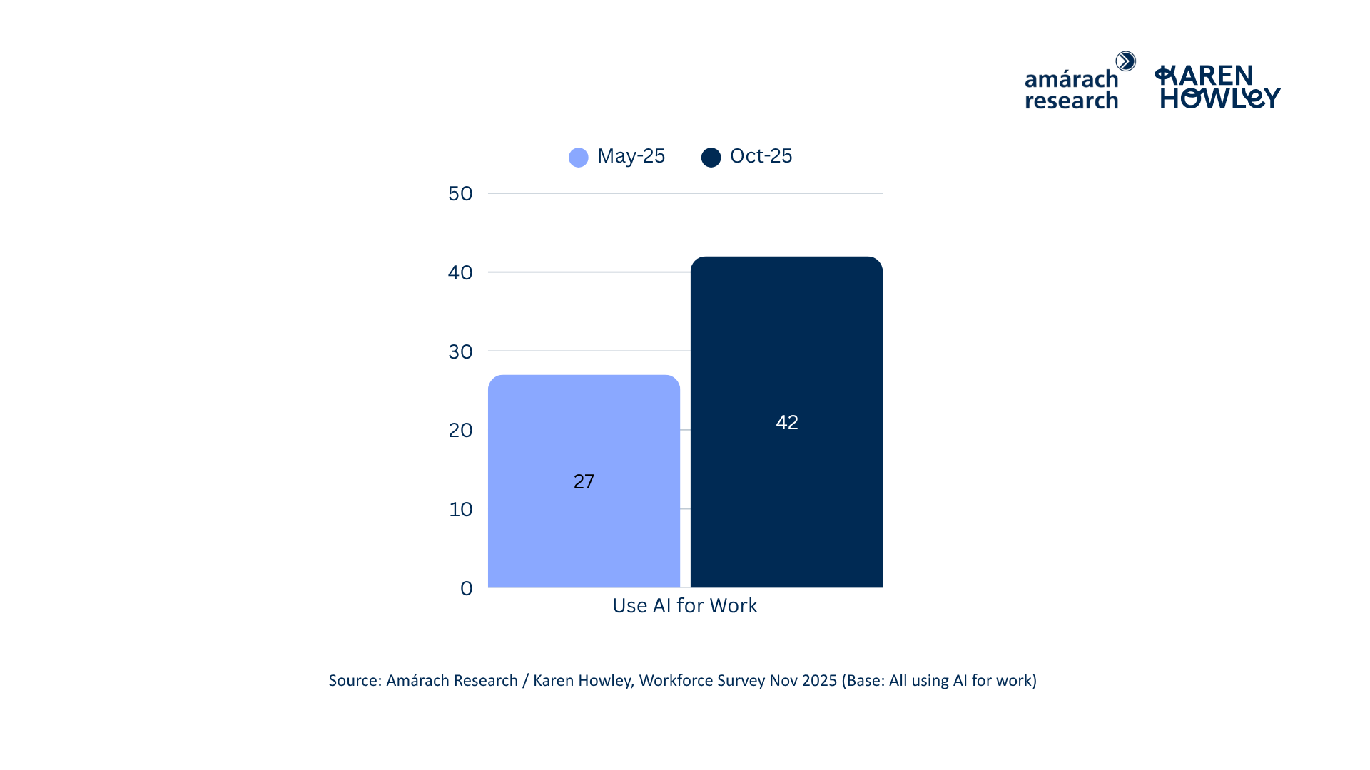This report draws on the same nationally representative survey of 1,000 adults aged 18 and over in the Republic of Ireland, conducted online by Amárach Research between 8th - 13th Oct 2025. Within this national sample, 603 respondents were in full- or part-time employment. Among these workers, 64% reported using AI, while 42% said they use AI as part of their work.